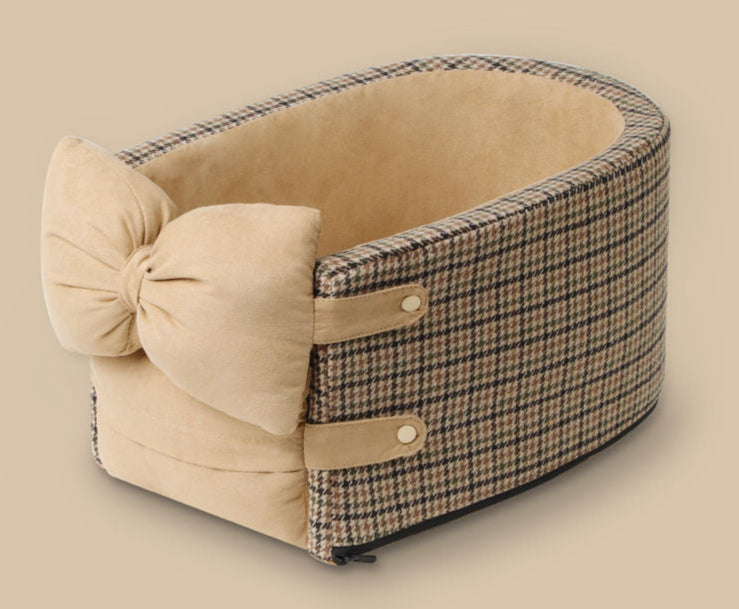 Dieses kompakte Haustierbett ist perfekt geeignet für die Mittelkonsole oder den Beifahrersitz deines Autos. Es bietet kleinen Hunden und Katzen bis zu 6 kg eine sichere und gemütliche Liegefläche während der Fahrt. Mit weichem Stoff in stilvollen Farben wie Caramel Mocha, Milchshake Beige, Bordeauxrot und Klassischem Schwarz.